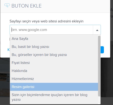 3. Butonun yönlendireceği bağlantı olarak web sitenizden bir sayfa ya da farklı bir web sitesinden bir sayfa seçin.