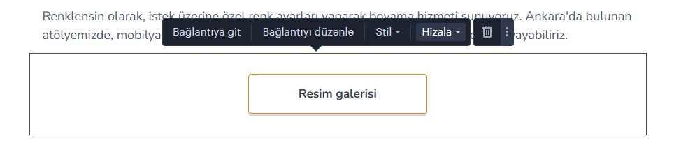 4. Butonun metnini, bağlantısını ve stilini değiştirebilir; butonu silebilir veya hizalayabilirsiniz. Git seçeneğine tıklayarak bağlantılı sayfaya geçebilirsiniz.