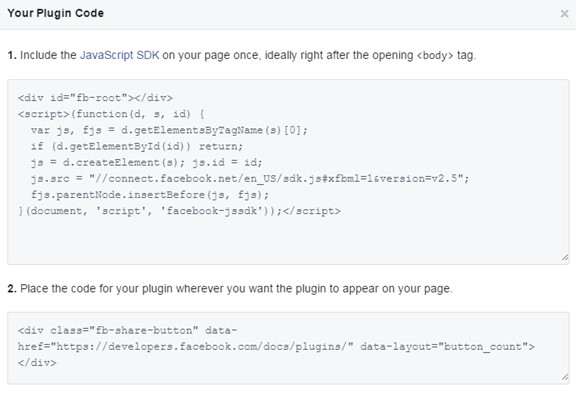 1. Facebook for Developers sitesine gidin ve eklemek istediğiniz widget türünü seçin. Size iki ayrı kod parçası verilecektir.