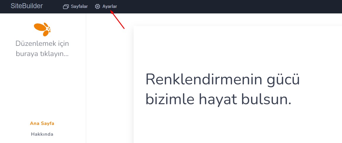 1. Proje editöründe Ayarlar bölümüne gidin.