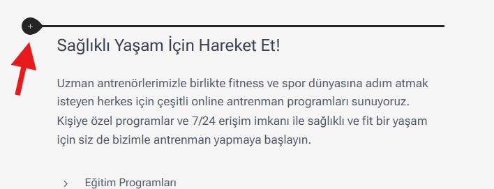 1. Yeni içerik ekleme için, fareyi ilgili bölümün üzerine getirin; artı butonu görünecektir.