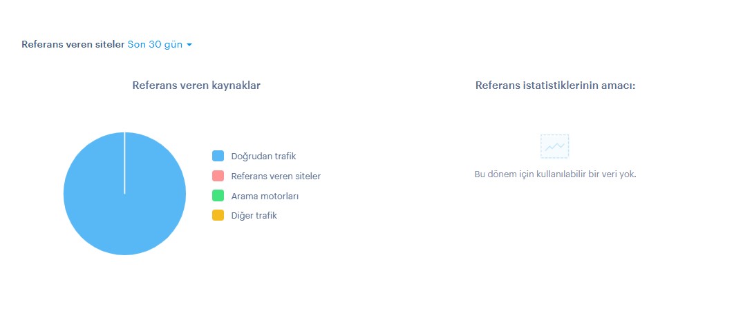Burada sitenize yönlendiren kaynakları bulabilirsiniz, böylece kullanıcıların nereden geldiğini anlayabilirsiniz. Gönderme kaynaklarının oranlarını görebileceğiniz bir pasta grafik mevcuttur.