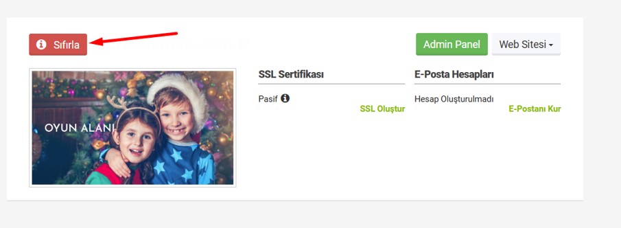 Bunun için Web Sitesi Yönetimi > Jetsite Hesapları bölümüne gidin ve silmek istediğiniz projenin Hesap Detayı sekmesini açın. Burada yer alan Sıfırla seçeneği ile projeyi tamamen silebilirsiniz.