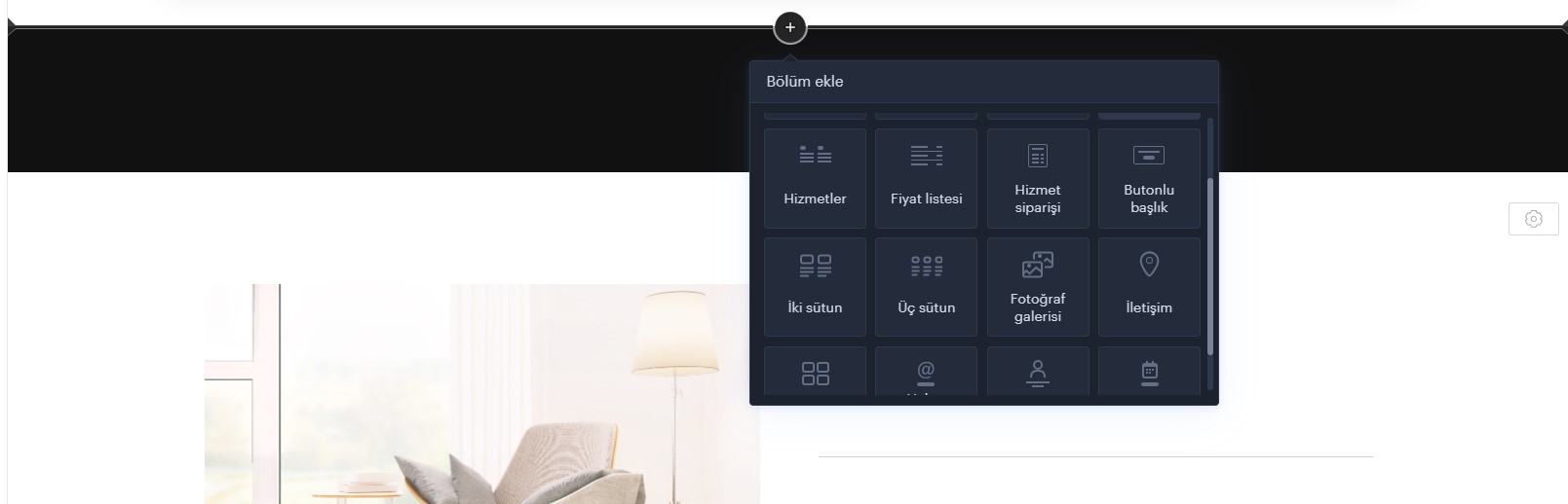 1. Yeni bölümler eklemek için, farenizi bölümler arasındaki aşağıdaki alana getirin. Bu alanda artı butonu görünür.